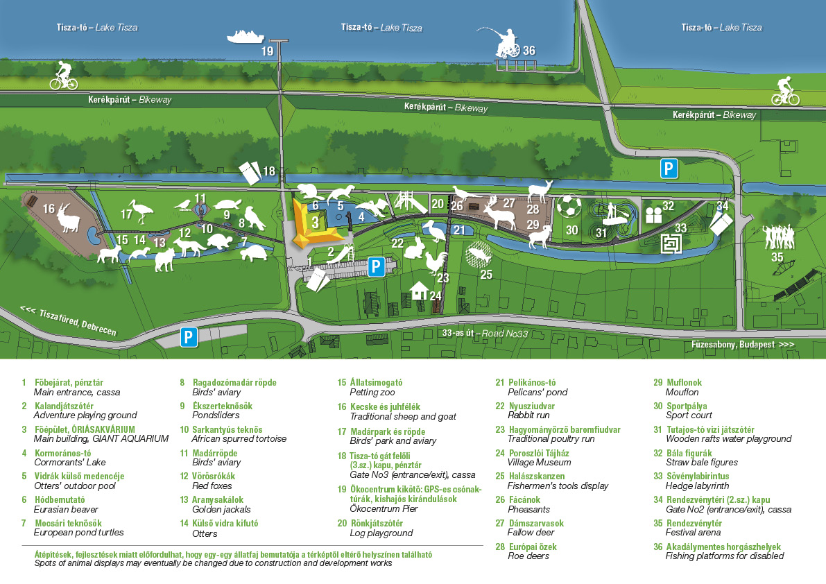 Figyelem: a térkép tájékoztató jellegű. A folyamatos fejlesztések, átalakítások miatt változások előfordulhatnak, egyes állatok élőhelye ideiglenesen a térképen jelzettől eltérő lehet!