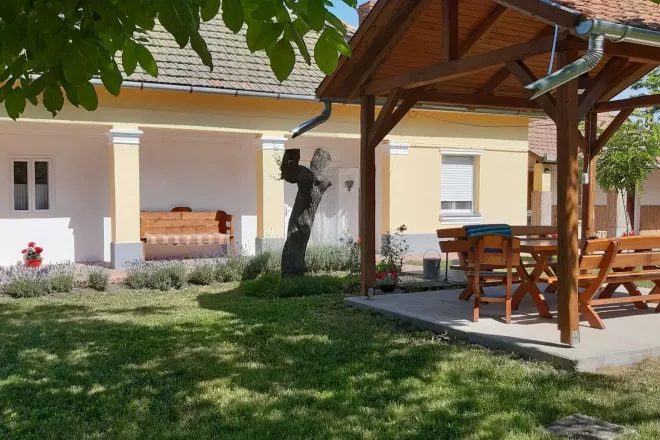Vendégházunk tágas udvarral vár, ahol kényelmesen pihenhetsz, élvezheted a napsütést és a kertben sütögethetsz! Vendégeink számára ingyenes kerékpár használatot biztosítunk, hogy könnyedén felfedezhesd a környéket!