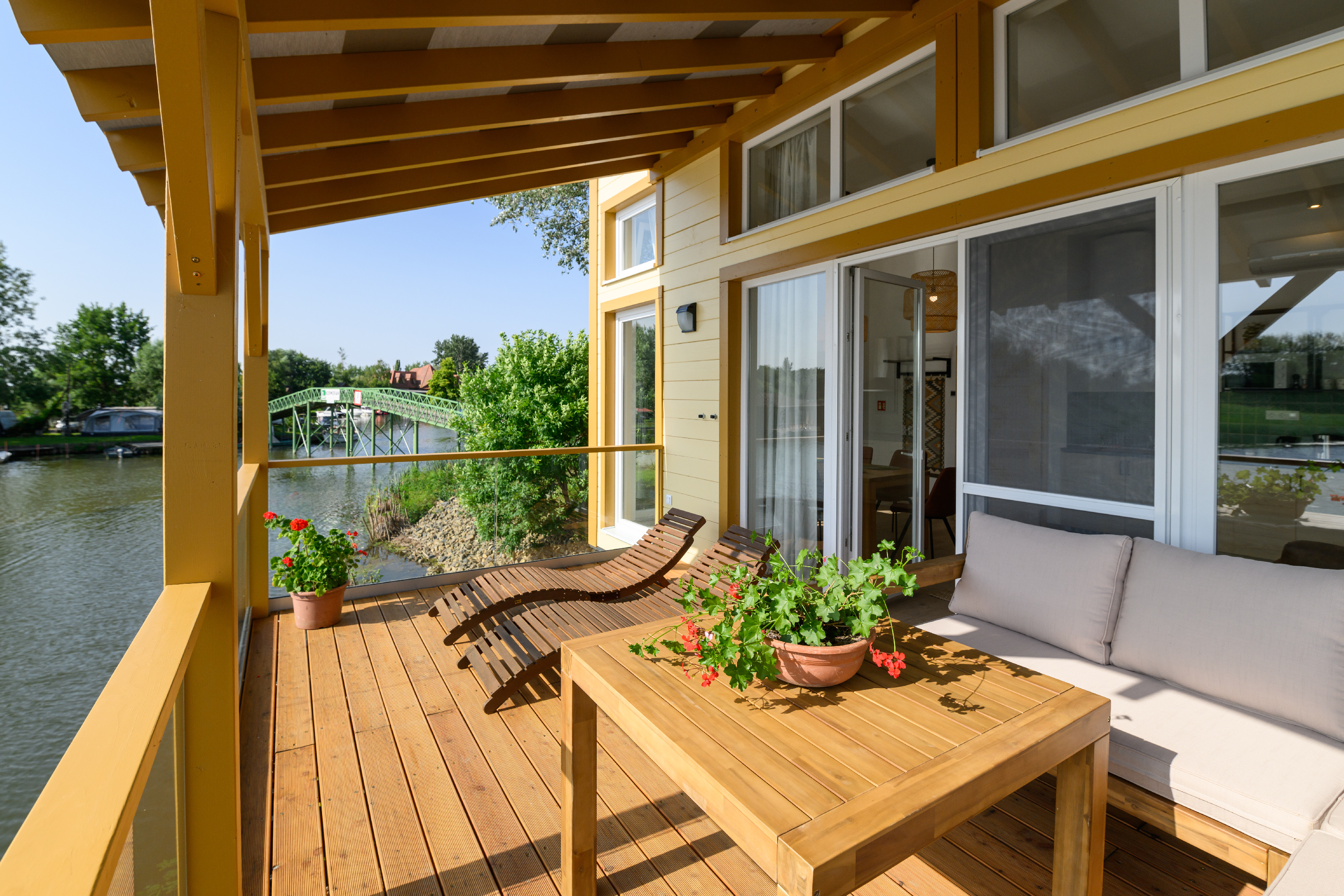A cölöpházak 4 személy részére kínálnak kényelmes pihenési lehetőséget, melyhez kettő, saját fürdőszobával rendelkező hálószoba, valamint jól felszerelt konyha, egylégterű étkező és nappali áll vendégeink rendelkezésére. Kikötőnk cölöpházainak szinte minden szegletéből a Tisza-tó káprázatos látványa tárul elénk. Hűvösebb napokon sem kell nélkülöznie a csodás kilátást, hiszen az otthonos, meleg nappali hatalmas üvegfalain keresztül csodálhatja a természet megannyi szépségét, míg a nyári reggeleken mi lehet annál pihentetőbb, mint a víz fölötti teraszon elfogyasztani egy isteni reggelit!