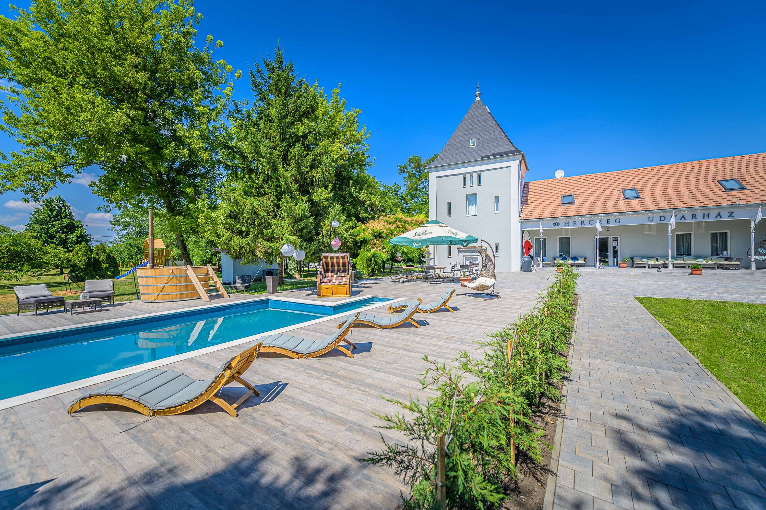 A Herczeg Udvarház 2 hektárnyi zöld terület közepén helyezkedik el, ősfákkal körülölelve, étteremmel, medencékkel, minigolfpályával, sütögetőkkel.