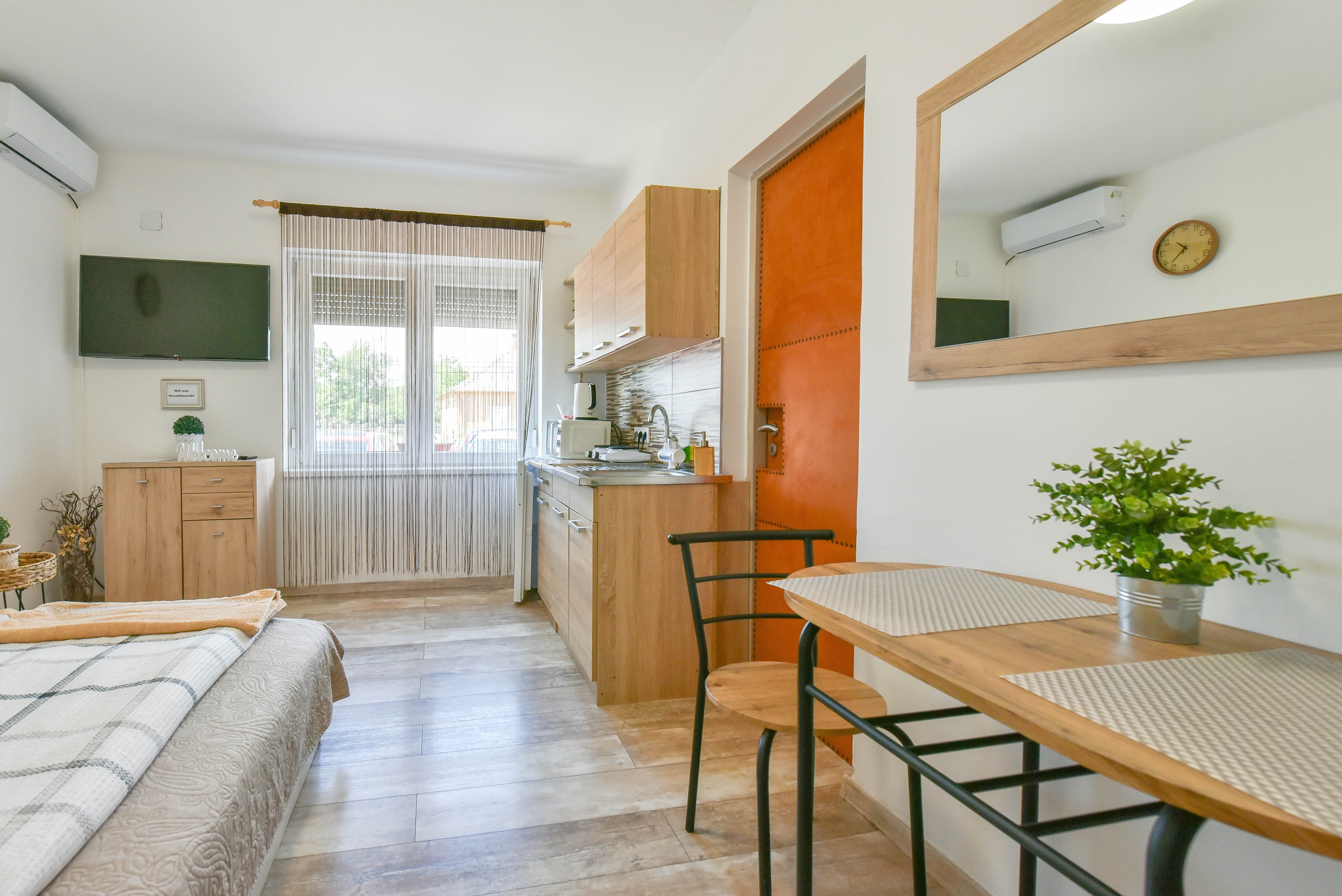 A vendégház a község központjától mindössze pár percre, a főútvonalon helyezkedik el. A szobáink mindegyike saját zuhanyzós fürdőszobával, TV-vel, hűtőszekrénnyel felszerelt konyhasarokkal rendelkezik.