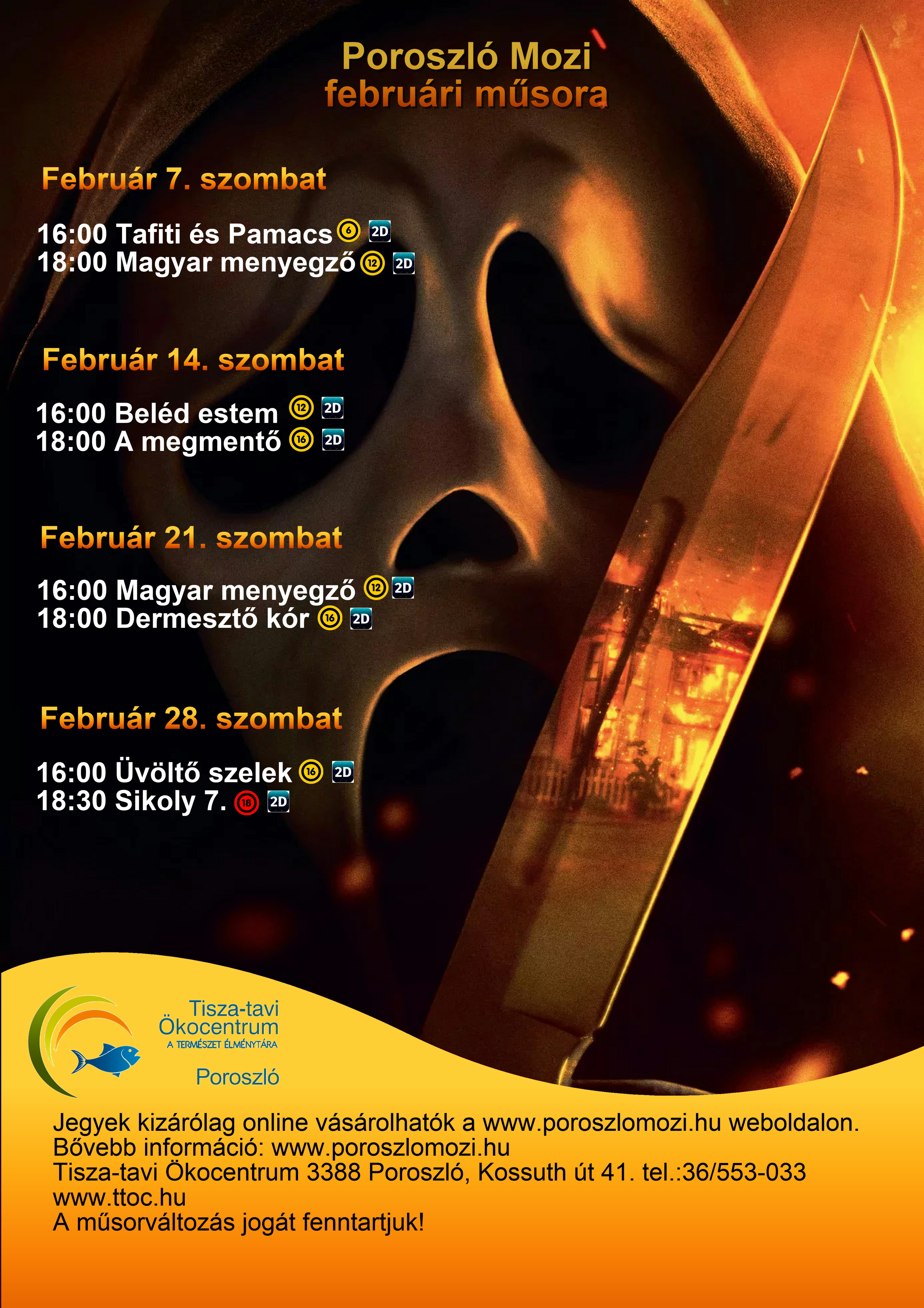 Februárban is várunk mindenkit szombatonként a mozinkba.További információ és jegyvásárlás: www.poroszlomozi.hu