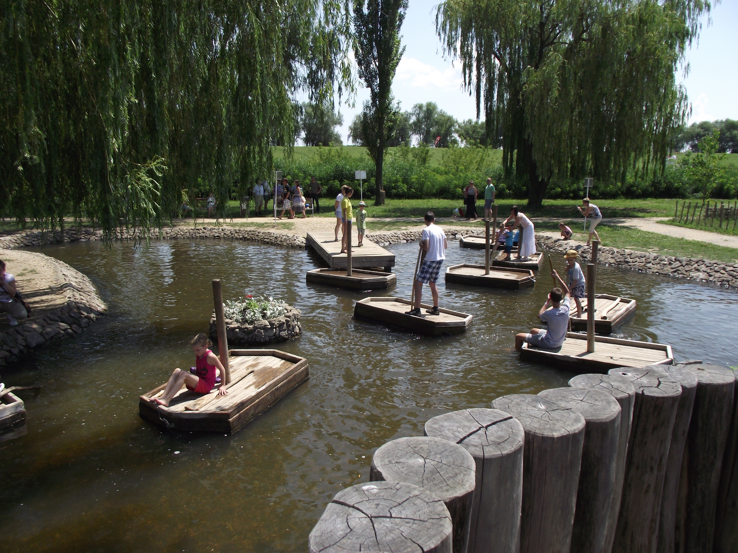 kalandjátszótér, akadálypálya, minigolf pálya, dísz tó kormoránokkal, tőkés récékkel és más vízi szárnyasokkal, rönkjátszótér, pelikános tó, dámszarvasok, európai őzek, fácánok, muflonok, "halászskanzen" (régi halászati eszközök bemutatója), nyusziudvar, hagyományőrző baromfiudvar, Tájház (helytörténeti gyűjteménnyel), Tutajos-tó, vízi játszótér (szezonális), bála figurák, mezítlábas ösvény, sövénylabirintus betűkirakó játékkal.